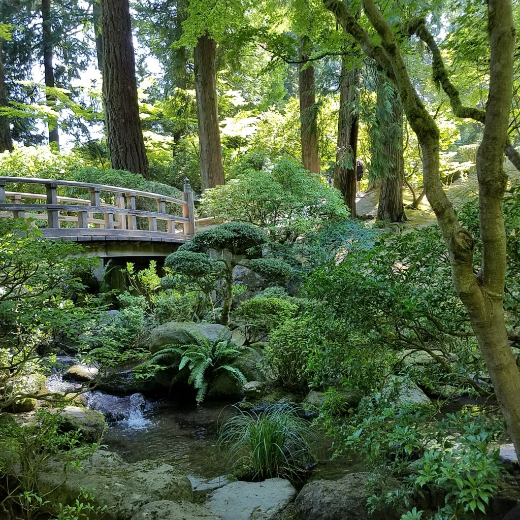 Anyway, I decided that today I wanted to visit Portland’s famed Japanese Gardens, approximately two miles from my hotel. So, using my phone’s GPS, I set off walking. It was mostly an uphill walk and, at times, a steep one. It was worth it! A deep sense of serenity envelops me as I wandered through the twelve acres of exquisitely planted and landscaped gardens, fountains, and pools. The intoxicating smell permeated my senses giving me tranquility. Many times I sat on wooden benches strategically placed throughout the gardens giving one privacy for the experience.